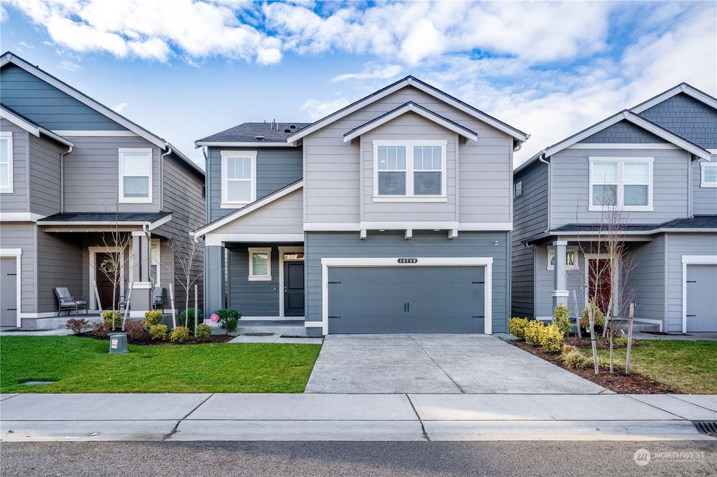 Welcome to Rainier Ridge! This stunning 2023-built home invites you in with a welcoming entry, a dedicated dining room, and a modern kitchen featuring quartz countertops, a walk-in pantry, and Smart Home technology. Upstairs, you’ll find 5 spacious bedrooms, including a luxurious primary suite with a double vanity, large shower, and walk-in closet. The oversized 5th bedroom doubles as a fantastic media room. With A/C included, breathtaking views of Mt. Rainier, and a new elementary school within walking distance, this home truly has everything you’re looking for!