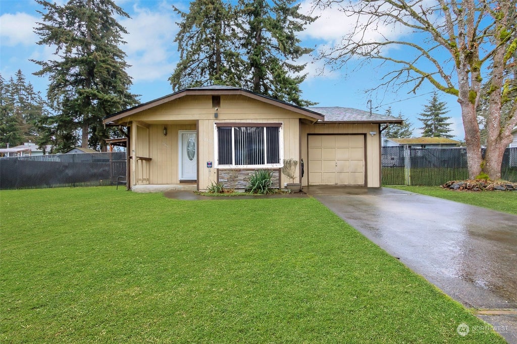 Delightful 3 bdrm, 1 bath rambler situated on nearly 1/4 acre! Move-in ready home features newer interior paint, stylish laminate & marble flooring + beautiful marble countertops throughout. The remodeled kitchen & bath offer modern updates, while updated vinyl windows, doors, molding + window blinds add a fresh contemporary feel. Step outside onto the covered back deck to enjoy the spacious fully fenced yard complete w/shed. Hot water heater replaced in 2019, roof replaced within last 5 years, this home is ready for its next owner. Enjoy ample parking with an additional driveway perfect for RVs, boats, or extra vehicles. In a highly convenient location minutes from shopping, dining, parks, schools, medical services, freeway access & JBLM.
