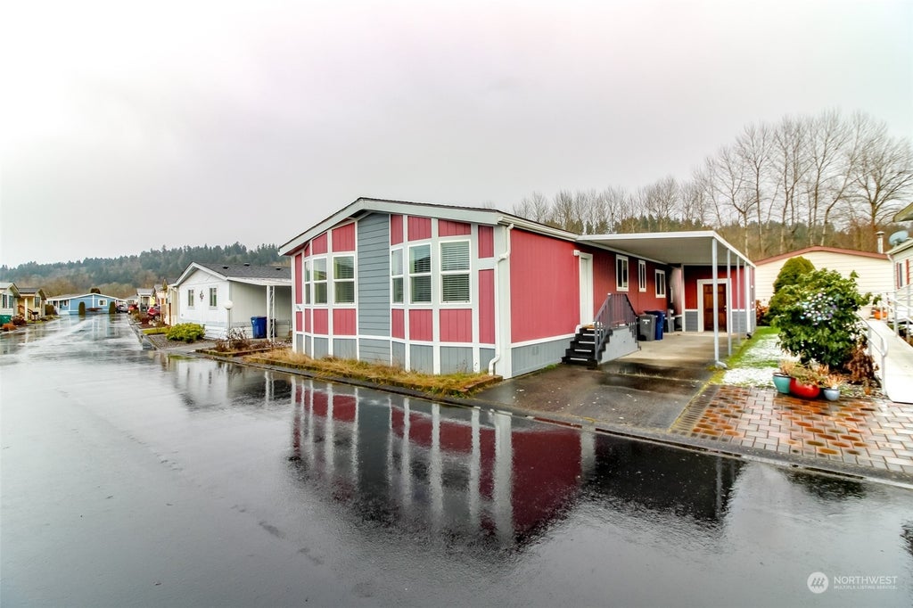 Lot rent averages $850! This home was completely updated in 2023 with new plumbing, electric, laminate floors, carpet, and paint inside and out while current owner used as a summer home. This home has the most spacious feel that I have ever seen in a manufactured home! Two living/family room areas open to the kitchen and dining space. Bedroom layout gives extra privacy when entertaining. Full of natural light and cabinets and closets to keep clutter at bay. If you are 55+ come enjoy The River Estates offering great amenities such as a pool, spa, clubhouse, pool table, library, and community events. Plus this unit has close access to the Green River Trail for all your outdoor exercise.