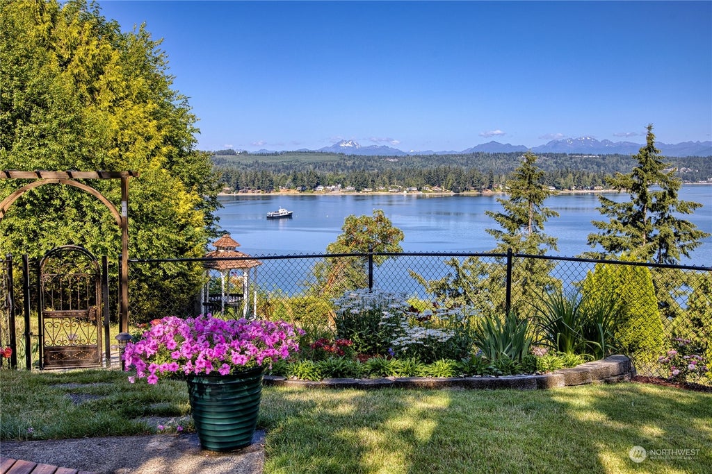 Experience breathtaking panoramic water & Olympic Mountain views from this fully updated Rambler w/daylight basement in charming Rocky Point. 3bdrms+den, 1.75 baths. Nestled on a half-acre, the property boasts mature landscaping, a cedar gazebo with a metal roof, a covered outdoor entertaining area, an updated deck, shed & firepit. This stylish home is an entertainer’s dream! Stunning new kitchen features quartz counters, custom cabinets, black stainless appliances, updated lighting & flooring. Recent upgrades include: new storm doors, double-pane windows, gas FP, gas furnace, water heater, electrical & plumbing updates, fresh exterior paint, & more! Primary on main, 2 FP, great daylight basement & indoor shop area. 1 car garage + carport.