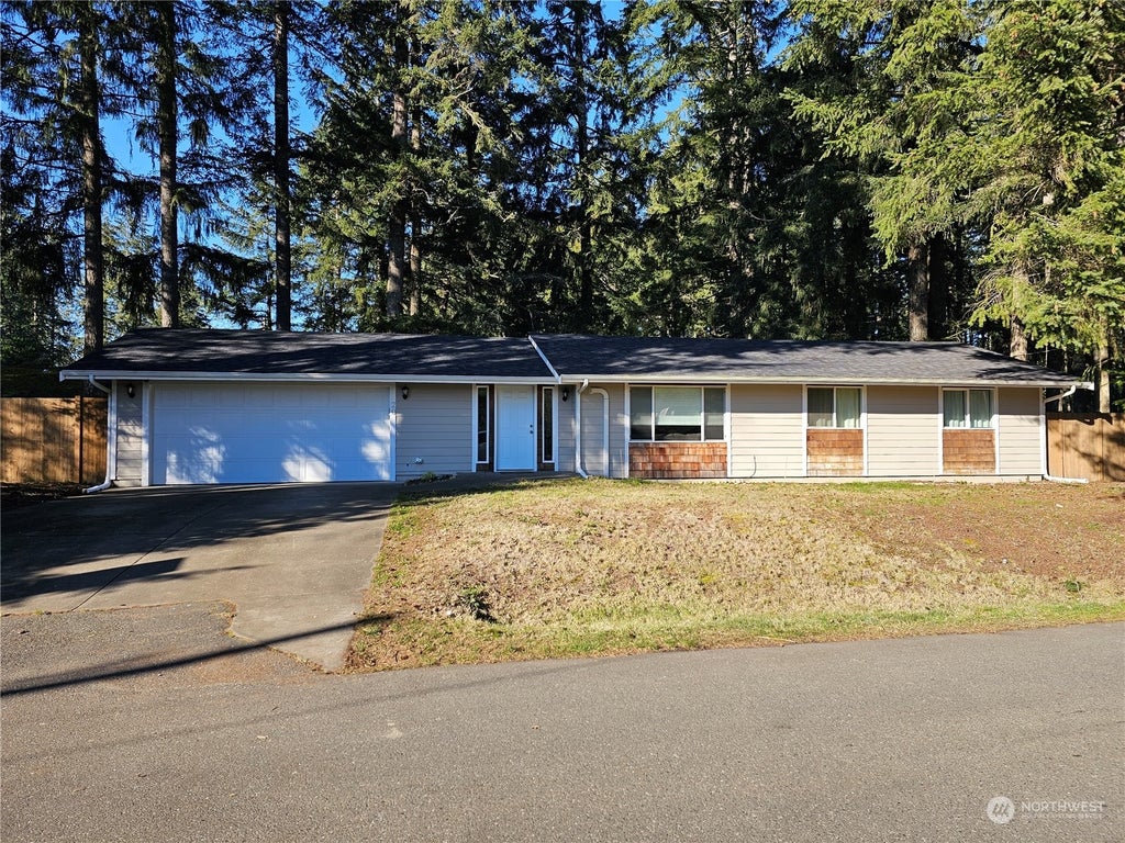 This very well maintained home will steal your heart with the inviting entry, amazing kitchen & appliances, living room, family room & a great floor plan packed into one great home! Shaker cabinets with granite counters, vaulted ceiling, primary bedroom with mini-split & one in the living room too. Primary bath with granite counters & easy clean tub surround. 2 car garage with stout shelving storage. This corner lot home allows nice privacy & is fully fenced & ready for you to call home. Your new home awaits at Rainbow Lake. The perfect size at 1250 sq ft. Not too much to heat, clean or furnish. 6 minutes to Shelton & a short drive to Hwy 3 & Oakland Bay. Rainbow Lake is a small 2 acres private lake with community access.