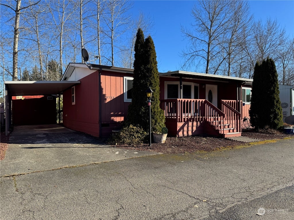 Welcome to this serene 55+ community-Midland Manor, small 20 home community! This well-maintained 3-bedroom, 2-bath manufactured home offers the perfect blend of comfort and style. Vinyl windows, sliding door to large covered back deck, laminate flooring, solar lights and carport. Park rent is $625 per month and includes water, garbage and sewer. Owner responsible for power, phone, and internet. Enjoy a private fenced backyard with tranquil tree views and a lovely garden space. Conveniently located and easy freeway access. Subject to park approval.