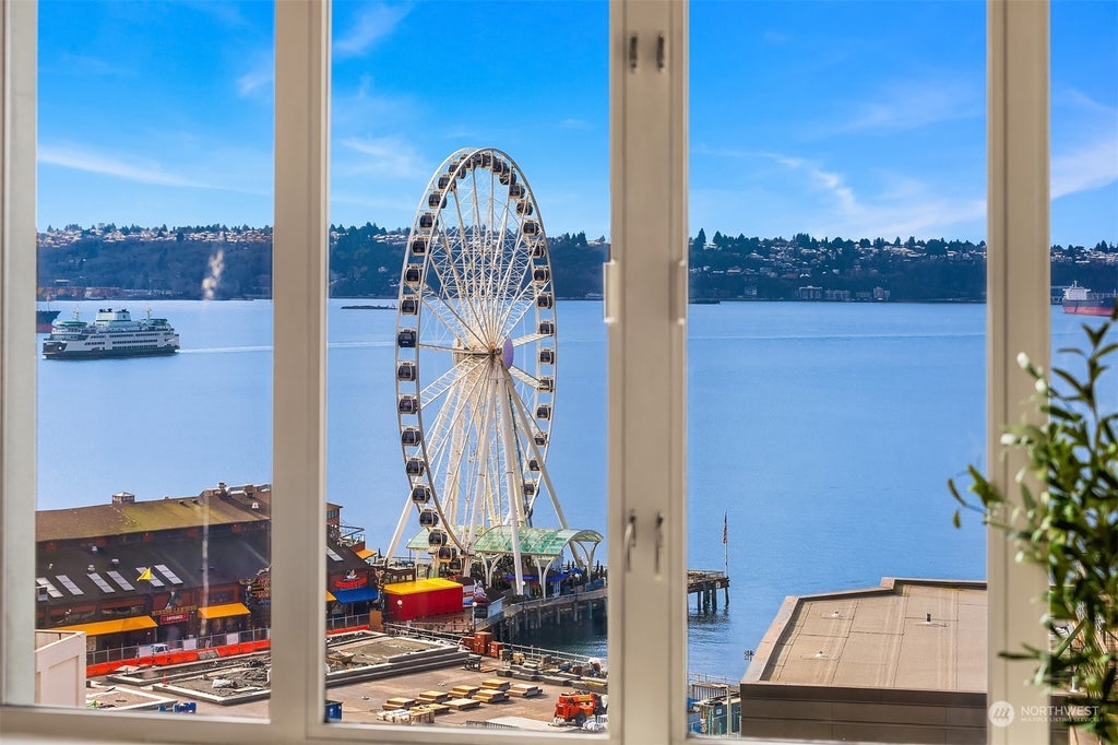 Enjoy the dynamic energy of downtown living at 98 Union, a boutique condominium complex located in the heart of downtown Seattle. Just across the courtyard you’ll find the Four Seasons Hotel, Goldfinch Tavern, and Fran’s Chocolates. And nearby, the iconic Pike Place Market, the Seattle Art Museum (SAM), and the Seattle Waterfront and Overlook Walk await exploration. Unit 504 has been updated with hardwoods throughout, built-in bookshelves, and dramatic black-granite countertops. Its new owner will enjoy inspiring westerly views of the Seattle Great Wheel, Washington State ferries, and the Olympic Mountains. One parking space, ample storage, and exceptional concierge services complete the downtown Seattle vibe.