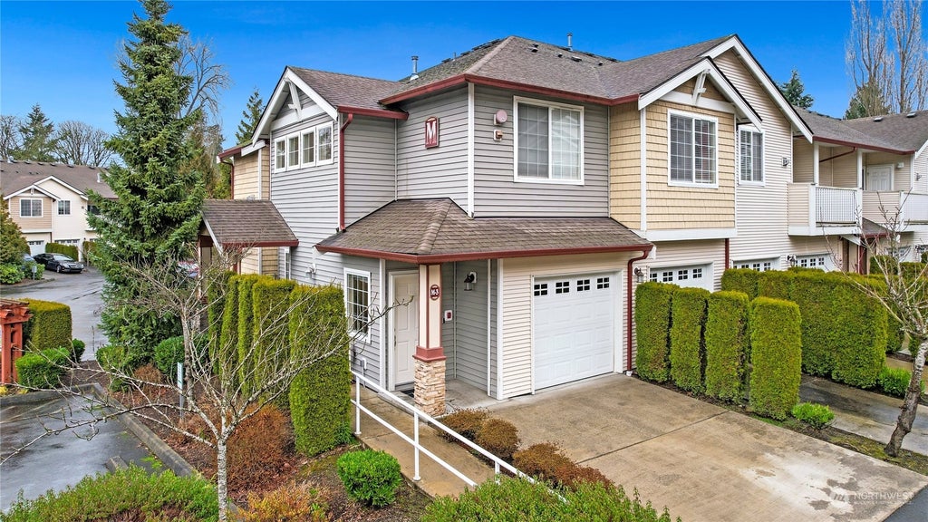 The ultimate in convenience, pristine ONE LEVEL condo w/garage in gated Stonebrook Village! Private & quiet END UNIT. Open floor plan w/kitchen flowing seamlessly into living & dining room. Darling kitchen w/cherry cabinets & raised bar for eat in counterheight stools. Lg living rm features gas fireplace w/slider to private deck offering green views of common areas. Primary w/ensuite large 5pc bath w/walk in closet. Beautiful finishes, new carpeting, LVP flooring, custom window treatments, freshly painted, meticulously clean & lovingly maintained. Laundry off kitchen. Lower lvl is garage & entry way. Closets & cabinets are plentiful. Low maintenance TURN KEY lifestyle. Prime location only minutes to Servicess, Parks, freeways & light rail!