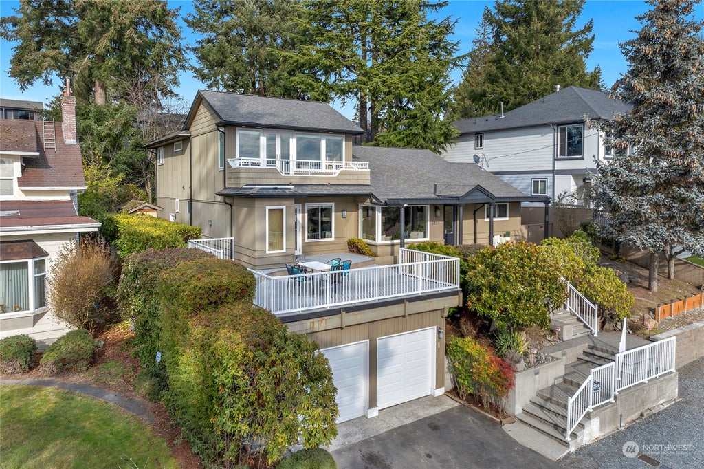 Welcome to this 3 Tree Point View Home, where seamless indoor-outdoor living awaits. Ideal for entertaining, the open concept main floor flows effortlessly to a large view deck. The private backyard with covered patio, gas fireplace, & hot tub, provides the perfect atmosphere to relax. The second floor boasts a luxurious primary suite with a spa-like ensuite, an incredible walk-in closet, and a private office space. The balcony off the primary suite offers a charming spot to sip your morning coffee. Designed for flexibility, the versatile main floor layout offers a private wing and a den that could easily serve as a second primary suite. Elevator access from the garage to the main floor adds ease to everyday living.