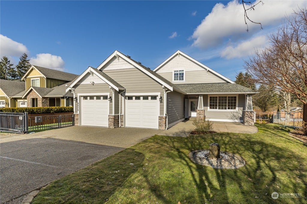 This meticulously-maintained home lives like a rambler with the added flexibility of a bonus room, bedroom & full bath upstairs! You'll appreciate the close proximity to shopping, dining & transit, yet tucked away at the end of a private street for a peaceful retreat. The open floor plan shows off the stunning hardwood floors; large windows let in tons of natural light. Generous kitchen offers exceptional storage space plus a nearly new stove. Office just off the entry features a huge window to overlook the beautifully-landscaped front yard & stamped concrete patio. Primary suite includes a 5-piece private bath. Attached garage boasts epoxy floor, heater, 240v outlets. Dog run, RV parking, motorized gate, sprinklers, too much to list!