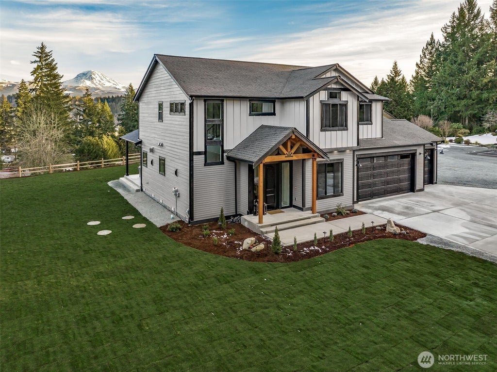 Built by Stennes Homes.. Spectacular custom home W/stunning MT. RAINIER VIEWS! Grand entry W/vaulted ceilings, chandelier, & custom walls! Open living W/gas FP ft. tile surround W/Doug Fir mantle & dbl slider to patio! 10ft ceilings on main! Chef’s kitchen W/quartz counters, full height back splash, Huntwood cabinets W/42” uppers, 31” apron sink, Frigidaire 60” dual fridge & Smeg 36” gas range! Den/office W/French drs & custom wall! Mud rm W/storage, & ½ bath on main. Primary W/vaulted ceiling, HUGE WI closet W/built in’s & spa-like bath W/quartz counters, free standing soaker tub, & floor to ceiling marble shower! 3 addtl bdrms & full bth w/dual sink vanity! Sonos sound syst. Loft/bonus area up. Covered patio! 1K sqft 4-car tandem gar!