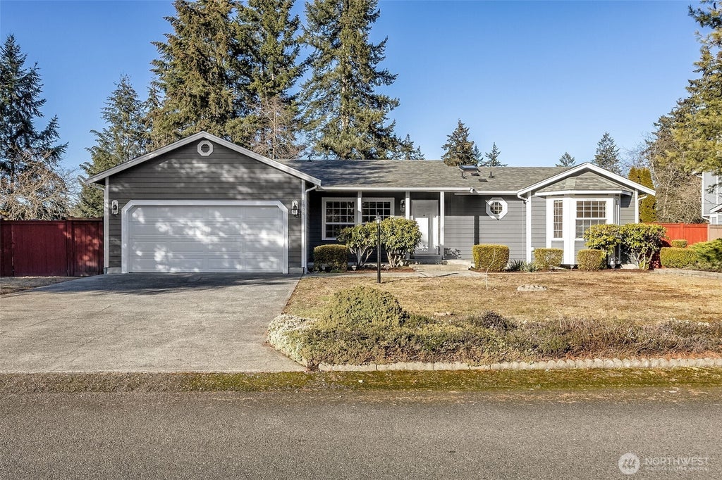 This charming 1-level home sits on a large, fully fenced lot in a quiet gated community & features vaulted ceilings, 3 bedrooms, 2 full bathrooms, formal living & dining rooms as well as a family room with wood-burning fireplace that is open to the kitchen with an eating bar. The primary suite offers a full bath w/ dual sinks. Two good-sized secondary bedrooms & full guest bathroom. Fully fenced, private back yard w/ shed & storage space. Attached 2-car garage plus RV parking. Convenient location with easy access to JBLM, shopping, restaurants & other amenities. You’ll love putting your personal touches on this great home. Don’t miss it!