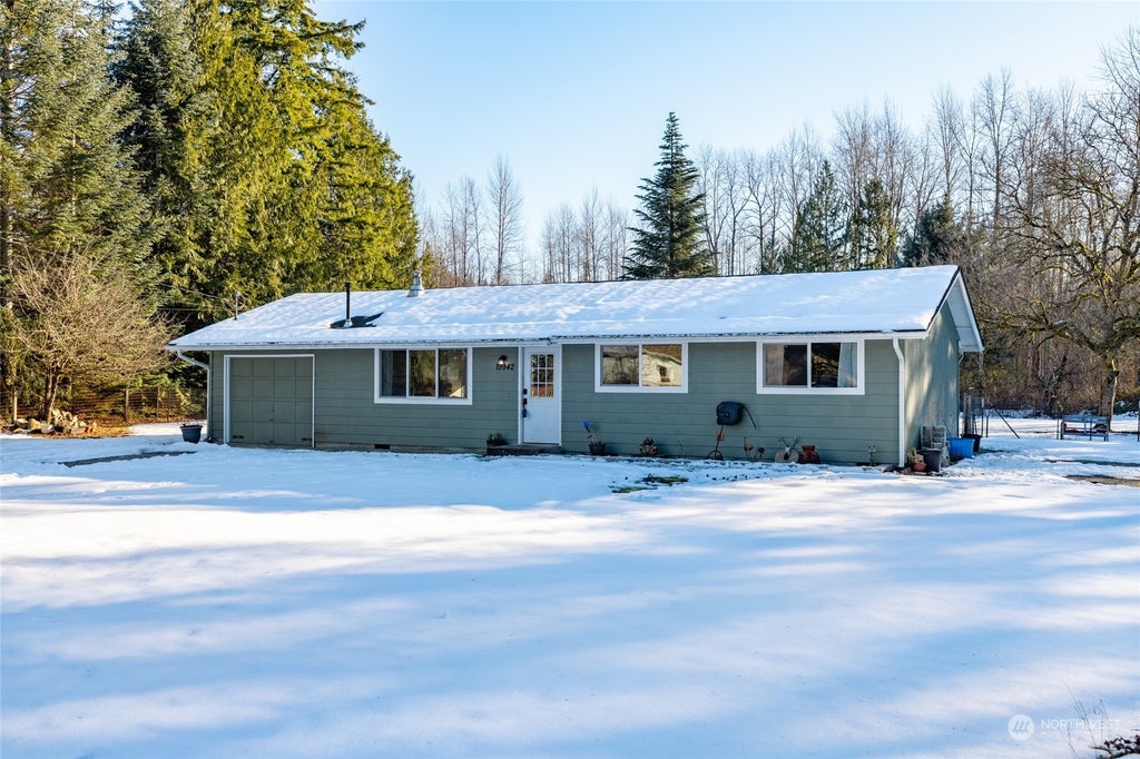 Rare opportunity for a stylishly updated rambler on almost an acre in a great location. Owners have completed all the important updates: new roof and gutters in 2018, stylishly renovated bathroom, new vapor barrier, new insulation in crawl space and attic, new septic tank and well + water softener. New double-paned windows throughout most of the house stream in natural light and view. Fresh paint throughout. Flat, sunny lot with plenty of room for a shop, RV parking, garden space, ADU etc. Close to I-5 but feels very private with a fully-fenced back yard. Great starter home, investment property, or downsizer home.