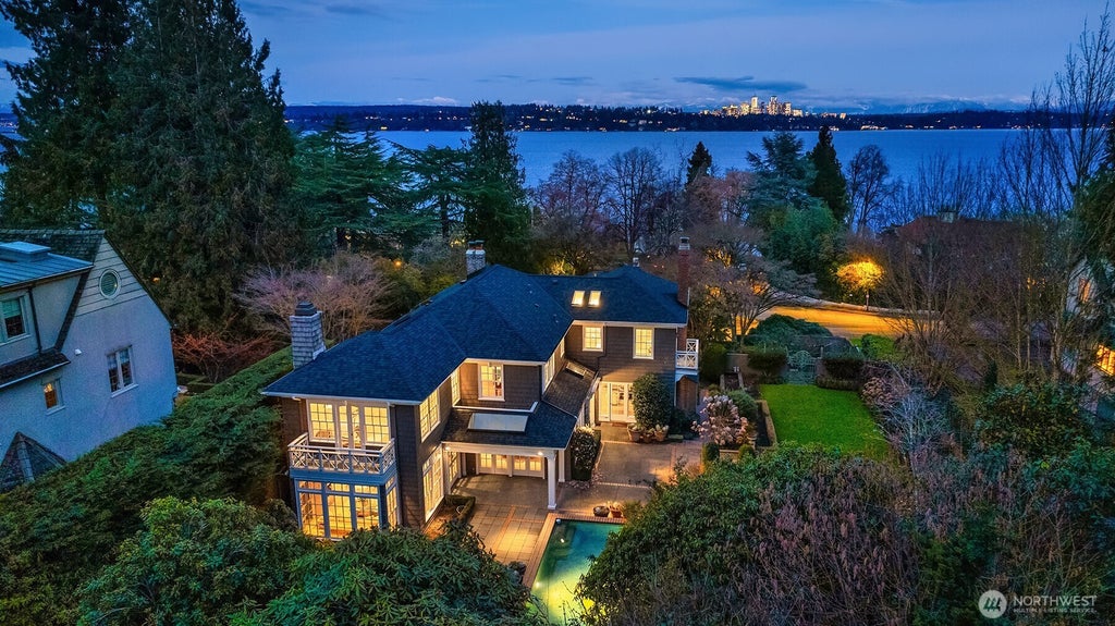 This architecturally stunning Traditional is perfectly sited on a street-to-street lot in coveted Denny Blaine taking in views of Lake Washington. Generous sun-filled spaces highlight beautiful details and offer multiple sets of doors for indoor/outdoor living taking advantage of the 20,000+ sq ft lot boasting lush gardens, pool, spa, level lawn and expansive patio. This is truly the perfect home for hosting summer soirées. Desirable floor plan with all bedrooms on the upper level. The primary suite is its own wing with private office, custom storage, and lake views. Additional bedrooms are spacious and filled with light. Nestled in an ideal locale just minutes to Madison Park Village with easy access to both Downtown Seattle and Bellevue.