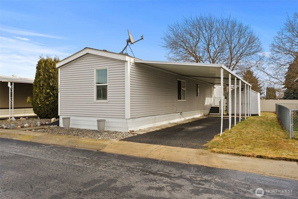 Come home to this meticulously maintained, spotless 3-bedroom, 2-bath manufactured home with covered deck and ramp leading to the front door! Numerous updates have been made, including newer windows, bath vanity, siding, railing, and flooring, among others. All appliances including the refrigerator are included. The spacious carport accommodates two vehicles, and the storage shed is equipped with electricity and makes for a versatile space. This charming home is located in the highly sought-after 55+ Contempo Park, offering amazing amenities like a pool, dog park, community center (ideal for parties, events, bingo, potlucks, etc.), game room with a pool table, sitting area with a waterfall, ample guest parking, and more!