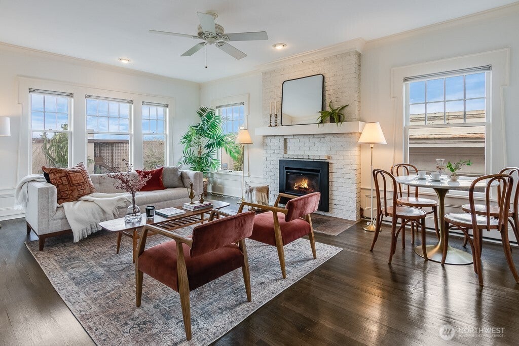 This top floor, west facing, apartment in the historic Rosemont Co-op showcases hand craftsmanship w/its unique window and door trim, wainscoting, French pocket doors & recently refinished oak floors. Enjoy summer mornings on the balcony and keep warm by the fireplace on winter nights. Natural light streams into this corner unit, and multiple closets offer flexible storage options. Electrical for the unit was updated in 2018. The Rosemont is a 1917 classic with a stunning leaded glass front door, a charming lobby, & a well-managed HOA located 4 blocks from light rail and 2 blocks from 15th E. Enjoy the quiet of the building, or head out to explore some of the best coffee shops and restaurants that Seattle has to offer. Waitlist for parking.