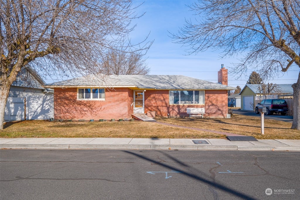 Welcome Home! Come enjoy the charm and comfort of this large brick home in great neighborhood. You will find a large living/dining open area with great propane fireplace for those cozy evenings. This home has 3 bedrooms on main level and one downstairs (without egress), 1 3/4 baths on each floor, large utility room, plenty of storage, fenced back yard and so much more. Small shed next to detached garage for those additional items. Wonderful yard with underground sprinklers, spacious covered back patio for entertaining and large unfinished mechanical room downstairs. Come take a look today at this rare find.