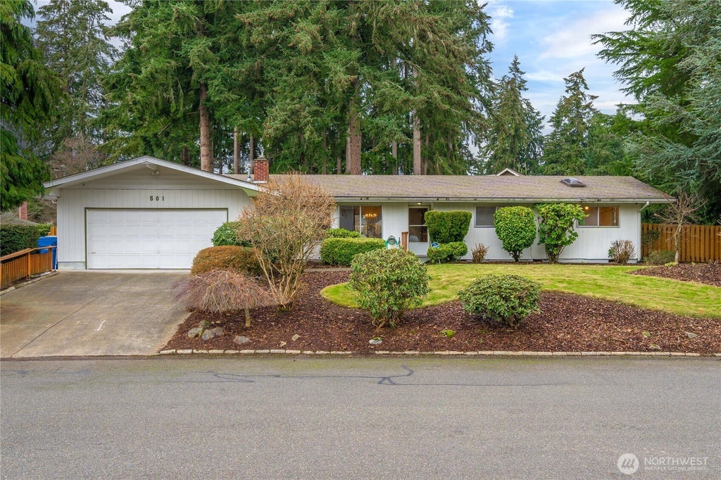 A charming 3BD rambler! This inviting 1,590 sqft home sits on a spacious corner lot in a quiet, established neighborhood. Features a bright family room, cozy living room w/ gas fireplace, & dedicated dining area. The U-shaped kitchen boasts warm wood cabinetry, offering both style and functionality. Enjoy the front & fully fenced backyard, perfect for relaxing or entertaining. The oversized 2-car attached garage provides ample storage, & a large detached shed - complete w/ electricity & heating - offers endless possibilities as a workshop, studio or additional storage. Steps from Tanglewilde Park w/ playground & outdoor pool. No HOA, the septic pumped & filed, & a thorough home inspection already completed in Jan. Ready for the next owner!