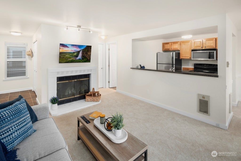 Light, bright home in downtown Kenmore with an open living room, kitchen and dining space. Spacious bedroom w/ extra storage and in-unit Washer/Dryer. Pristine paint and carpet. Reserved covered parking for added safety. Fun with friends at Community exercise room, clubhouse, and pool. Well-run HOA w/ low dues, ample reserves, and recent exterior updates makes this a great investment. Pet Friendly: Bring your big dog for a walk on the Burke-Gilman trail on Lake Washington. Sun with your cat on the deck. Stroll to downtown Kenmore - City Hall Park, The Hanger (coffee, games, plaza), Pizza and Pubs - all at your doorstep. Free Home Warranty. No rental cap, mostly owner-occupied. Recent updates: New windows & sliding doors, new roof & deck.