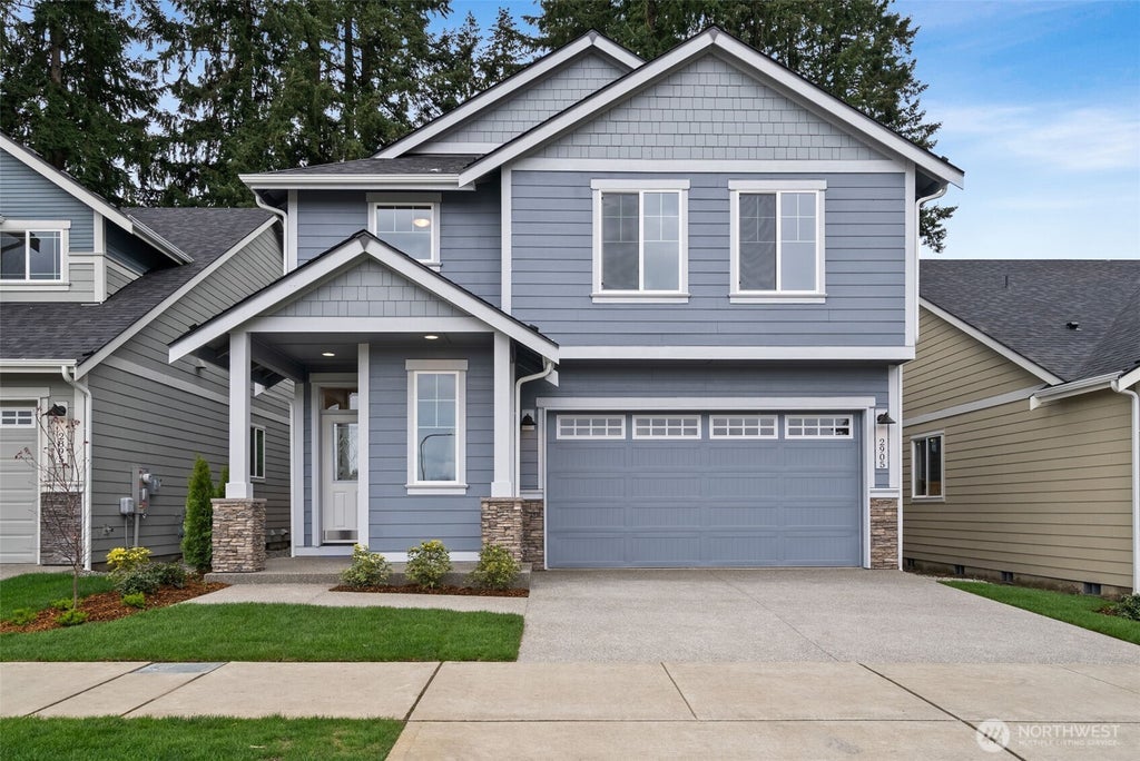 Experience luxury in this exquisite Move In Ready Skyview Estates home by Rob Rice Homes! The Dogwood-2591 sf features a spacious kitchen adorned with "Charcoal" Maple cabinets, quartz countertops, a full tile backsplash, a gas stove with double oven, and a walk-in pantry. Expansive hardwood floors fill the entry, kitchen, dining, and living room, plus quartz counters in all baths & utility room. This plan has a main floor den and an expansive upstairs bonus room for flexibility & functionality. Outdoors, enjoy a covered patio, full privacy fencing, and a landscaped yard. Energy efficient features include solar panels, a heat pump & hybrid electric water heater. Super close to I-5, Costco, & schools.