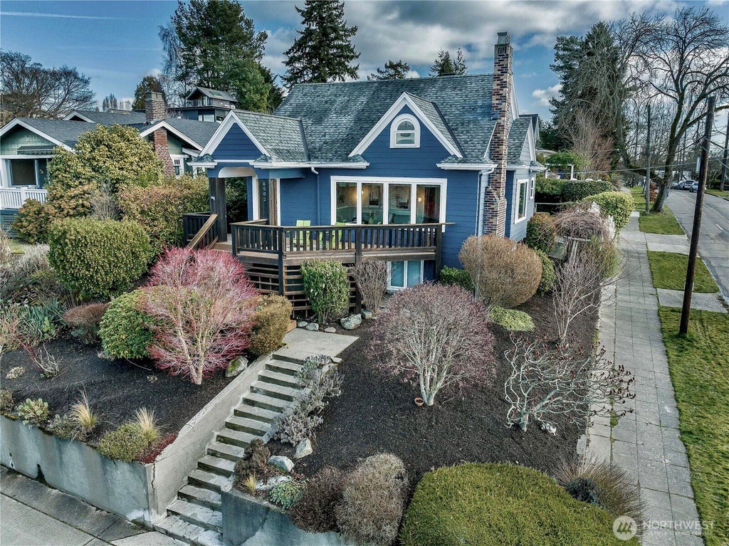 Whether you're gazing at the ever-changing sky on a gray, cloudy day or basking in the bright sun with sweeping views of the Olympics and Puget Sound, this home provides a front-row seat to nature's most captivating show. Located just a block from Sunset Hill's coffee shops, restaurants, and market, this home blends timeless character with modern updates. Spacious top-floor primary suite offers new wool carpet, vaulted ceilings, skylights & spa-like bathroom. The updated cook’s kitchen has room for inspiring meals or parties spilling onto the front deck or private patio in back. Two additional bedrooms and a full bath complete the classic floor plan, while the lower-level flex room provides endless possibilities. Garage for car or toys.