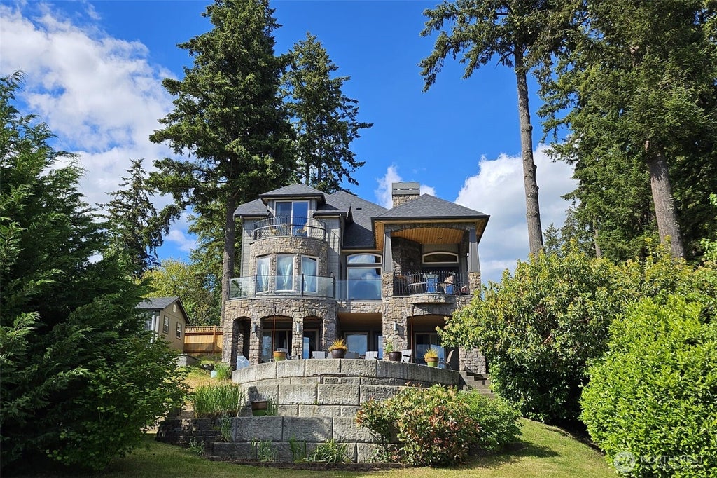 Step back in time to a Custom-Built Tuscany Lake Front Castle Style Villa in the Northwest! This exquisite multi-generational living experience boasts 3 Luxury Primary Lake View Balcony Suites with 4-3/4 Baths, Office, Pantry, Library in addition to an expansive 1450+sf MIL. Amaze yourself in this Architectural Masterpiece with Soaring Tray Ceilings, Stained Concrete Radiant Floors and an abundance of Natural Light. Amenities unrivaled await you, too many to list! Space for all as MIL includes full kitchen, Multi Use Room, Great Room, 5 Piece Bath and Separate Entry. Shared Dock on Adjacent Property with potential to revise. Your personal Lake Front Retreat on the Hill awaits you! Seller is a Real Estate Agent.