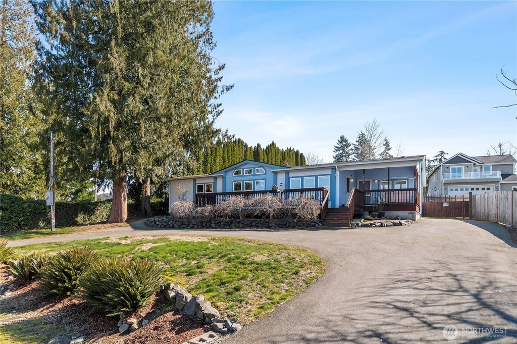 Nestled in Church Lake Waterfront Tracks, a neighborhood with a community park & beach access, is this spacious 3-bedroom, 2.5-bath triple-wide manufactured home. Enjoy tranquil lake views from your expansive 800+ sf front porch or unwind in the exceptional backyard retreat. Highlights include a pond, waterfall, deck, cozy firepit, garden arbor, and lush garden area. Inside there are 2 HUGE living areas, a large kitchen and a primary bath with garden tub. A 2-car detached garage is tucked away at the back of the property, for plenty of storage. Nature lovers and those seeking peaceful outdoor living will fall in love with this property. Please note: Property is sold as-is. Don’t miss the opportunity to make this unique home yours!