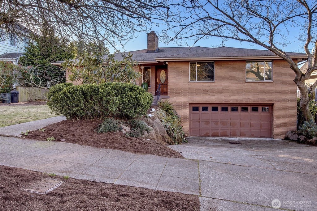 Mid-Century Modern in Quintessential Queen Anne. 3,080sqft home centered proudly on an oversized 8,000+ sqft lot with spring flower beds, mature hedgerows, and a wonderfully large back yard. Walk to every amenity imaginable. Only blocks away from amazing restaurants, gyms, Trader Joe's, apparel, cafes, and more. The home feels so comfortable. Generous living spaces, both on the main and in the walk-out lower level. Sit by the fire or entertain guests on the 300sqft deck while ogling sunsets and the Olympics. A true 2-car garage with several more off-street spaces. A lower level craft & laundry room, a rec / media room with an additional fireplace, a 4th bedroom, and full bath. All in a premier Seattle location and move-in ready.