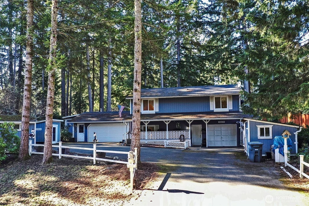 Golf course living beckons! This inviting 2-bed, 2-bath daylight rambler on Anderson Island offers both single-level ease & additional fully finished basement. Enter to spacious living room which flows seamlessly into kitchen & dining space. You will love the ample cabinetry, eat-in-peninsula, & bay windows overlooking the 6th fairway. French doors open to a partially covered deck from which to enjoy lush landscaping & abundant wildlife! Primary main floor bedroom w/walk-in closet & continental bath. Guest room is also on the main floor. You'll appreciate the finished basement w/ a 3/4 Ba...even more living space. Spacious 2 car garage+ smaller golf cart gar.+ multiple storage sheds for all your tools& toys! Riviera HOA Amenities included.