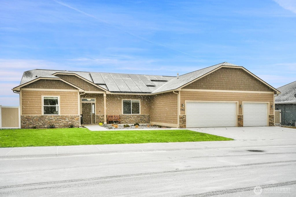 Welcome to Crown Crest. This 4-bedroom home is a rare combination of level entry & daylight basement. Built in 2017, the house is better than new, having been upgraded with solar, EV charging, & emergency back-up battery. Enjoy expansive views of the valley & foothills from most areas of the home & covered deck. Desirable open concept floorplan is complete with a chef's kitchen w/ gas range, granite countertops & SS appliances and living room w/ fireplace. Luxury primary suite offers a custom walk-in shower & jetted tub. The 1100 sq ft unfinished basement offers a fabulous opportunity to add value & create space designed for your living. Insulation, partial walls, & plumbing have been installed. Superb location to enjoy the best of Yakima!
