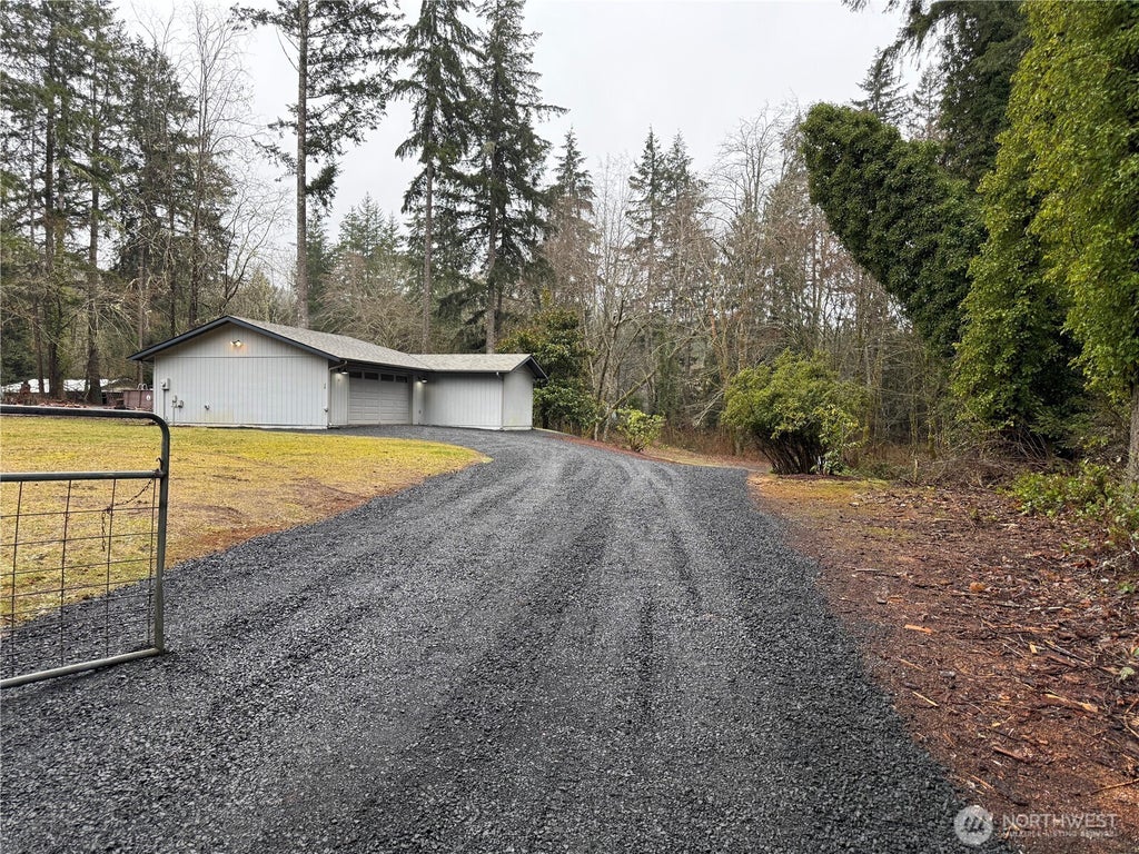 Creek front property! Cute 1 bedroom rambler with oversized attached 2 car garage on a private .75 acre lot, home features hardwood floors throughout, new carpet, new blinds, new paint inside, granite countertops, 10 year old roof, newer appliances, propane furnance, propane hot water, individual well that was just serviced. Garage is fully finished. Property features 109' Coultert Creek frontage, fully surveyed, 3 bedroom septic system installed, individual well, RV hookups include water, power, sewer, and propane. Great opportunity to live in current home keep as an ADU and build something bigger on this property.