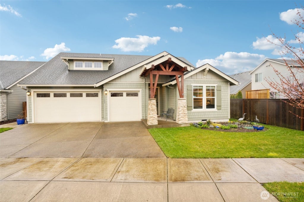 Discover this beautifully designed home featuring 3 bdms, 2 baths & office nook. Perfect for modern living. Step inside & experience tall ceilings that enhance the open & airy feel. A Great room concept offers seamless flow, w/ built-ins in the living area & wired 7.1 SS for ultimate entertainment. Your kitchen is a dream, w/ plenty of storage, white quartz countertops, dbl oven, built in microwave, gas cooktop & new refrigerator. The prm ste is a retreat, w/ W/I closet, soaking tub, shower & dual vanity. Smart & functional upgrades include wired Ethernet internet, wired for generator, an insulated 3 car garage w/ heater & a tankless WH. Enjoy outdoor living w/ extended back patio for entertaining, wired for spa & stunning sunset views.
