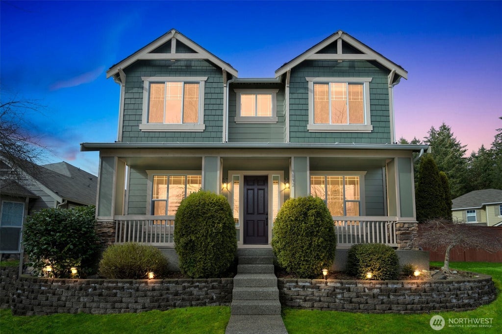 Stunning 4-bed + office on huge corner lot in desirable Meridian Campus. A welcoming cov front porch invites you in, where you’ll find laminate wood flooring, elegant plantation shutters, white millwork & rounded corners. Spacious LR is the perfect spot to unwind by the cozy gas FP w/stone accents & built-in shelving; open to the kitchen w/bar seating, brkfst nook, WI pantry & SS appliances. Head upstairs to find the spacious Primary Ste boasting dual vanities, tile surround shower-tub combo & WIC. The large, fully fenced backyard is an entertainer’s dream, offering plenty of space for BBQs & outdoor fun. 2-car attached garage & heat pump. Enjoy 2 golf courses, park, trails, and easy access to the Puget Sound, restaurants, shopping & JBLM!