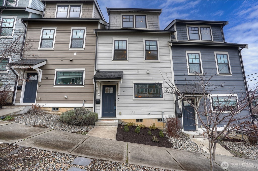 The sleek Modern aesthetic will wow you at HELLO! Open Concept, light filled main level provides the perfect backdrop for gathering, group meal prep or a no commitments afternoon in front of the fireplace. Bedrooms on both upper levels provide privacy for all. 3rd floor primary is spacious offering a luxurious ensuite bath decked in custom tile & matching warm wood vanities. Power blinds & front loader W/D provide high end ease. Gently lived in, this home feels brand new. Everything you need is right outside your door! Stroll to the Brewery District & UWT in just minutes. Dedicated space makes parking a breeze. Nearby light rail means easy trips to the Dome, Seattle & Seatac. No HOA. Urban style & convenience wrapped a bow! Amazing Mt View!