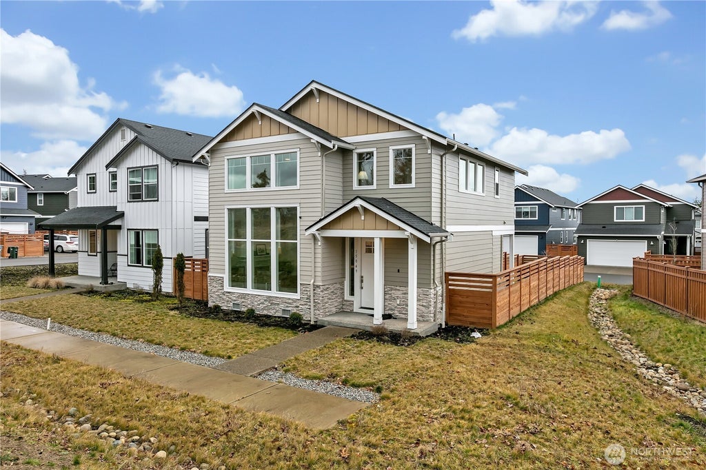 SELLER OFFERS A 10K CREDIT AT closing for a 3/24/25 or sooner close date. Discover an exceptional design, luxury & lifestyle in the highly coveted Tehaleh Community. This inviting & elegant floor plan exudes a Great room concept w/Territorial + Mt. Rainier Views, Roman clay fireplace surround, vaulted ceilings, expansive windows & LVP floors. The modern kitchen offers an oversized serving island, custom cabinets, gorgeous quartz counter tops & a tremendous walk-in pantry. Main level living adjoins to your private covered patio & generous fully fenced yard/gardening spaces. The upper level boasts 3 bedrooms, loft, 2 full baths & laundry rm. The primary Ensuite features a 5 pc bath, tiled flooring + walk-in closet. Enhance your lifestyle!