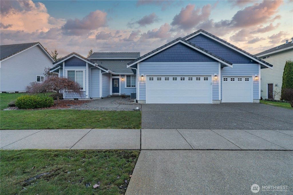 A gem in Campus Green. Desirable & popular location within the Meridian Campus Master Planned Community. Timeless rambler with a 4th bedroom/ bonus rm upstairs. Spacious 3 car garage, with utility sink & storage shelving & 2 elect car charging ports. Ample driveway parking. Miles of community trails for walking, bicycling or pushing a stroller. Close proximity to 2 major golf courses. Easy access to I-5 and all major amenities. Bright & spacious kitchen. All appliances will remain with the home. New hood fan & newer DW. 4 bedrooms, 1.75 bathrooms, tile accents throughout the home, & hardwood floors. Central Air Conditioning. Fully fenced with a sprinkler system in the yard. Home is vacant, turnkey & ready for you to call it HOME!!