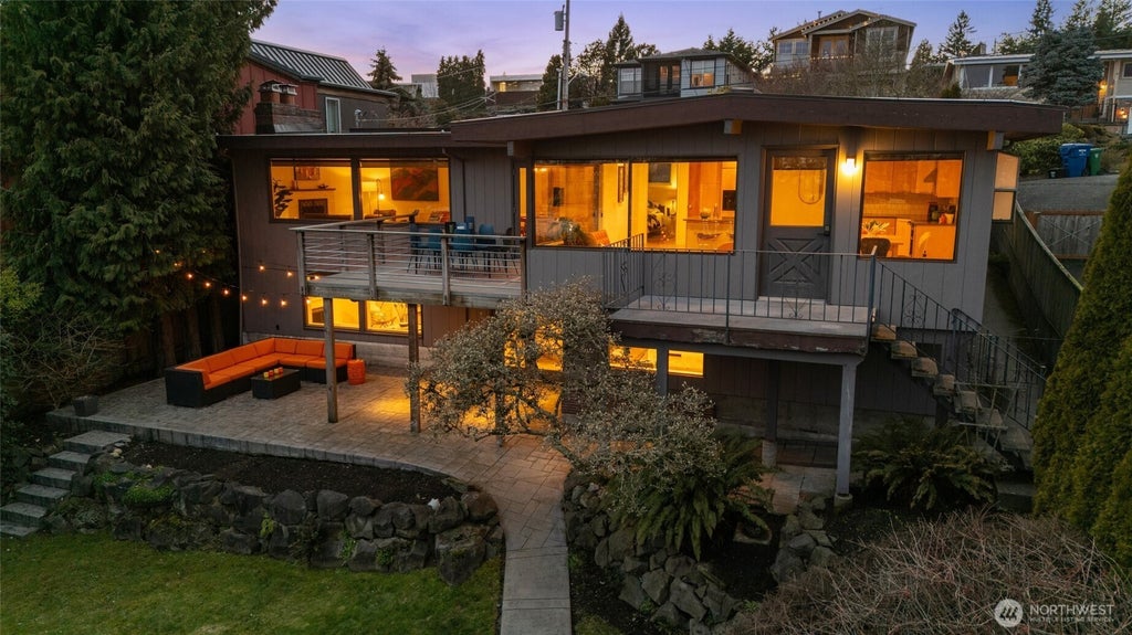 Beautifully preserved mid-century Magnolia home. Expansive wall of windows greet you, framing breathtaking panoramic views of downtown, the city & bay. This open floor plan includes generously sized living spaces with two bedrooms & a rare cozy family room just off of the modern kitchen. The daylight lower level offers even more versatility, featuring a 3rd bedroom, family room, flex space, & an office/hobby area. French doors lead out to the backyard, providing seamless indoor-outdoor living. A charming outbuilding offers additional storage. Recent updates includes: new roof, range, paint, carpet & landscape. A truly amazing home situated on an 8,000+ sq foot lot. Ideal location, minutes from Ella Bailey Park, schools & downtown.