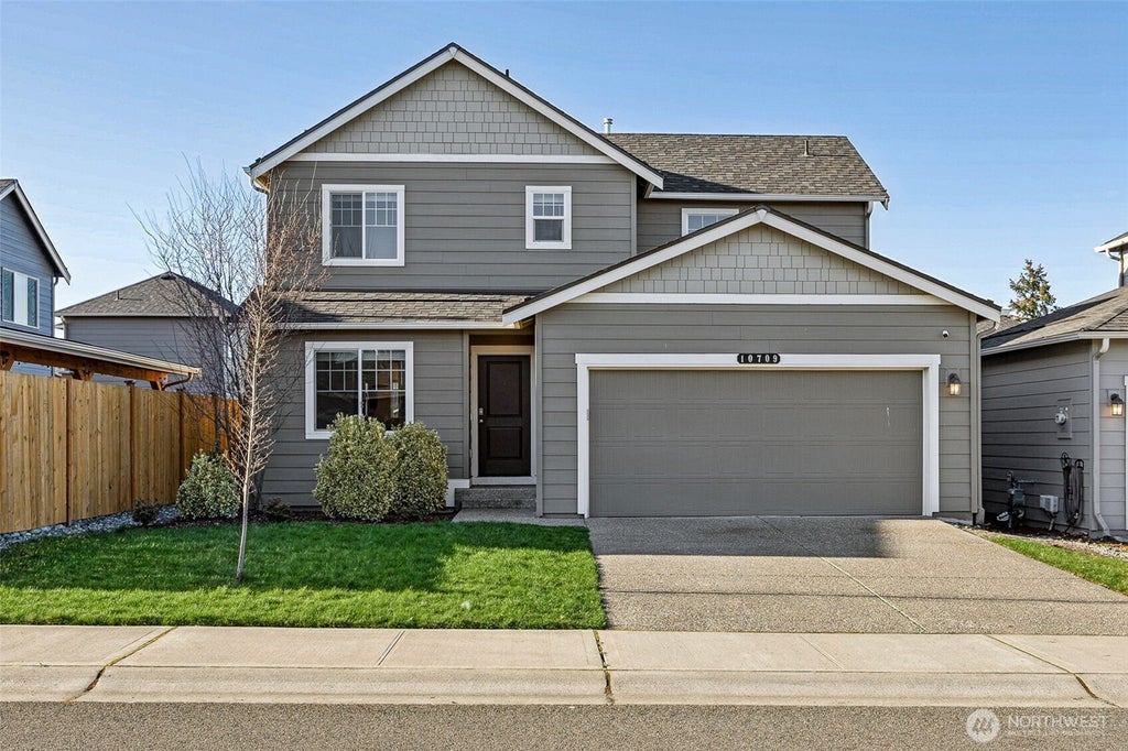Located in the Lipoma Firs community within the Puyallup School District, this well-maintained 2020-built home offers modern comfort w/partial Mt. Rainier views! The open-concept design features a beautifully updated kitchen with a new island for additional seating, farm sink, subway tile backsplash, pantry, laminate hardwood floors, & all appliances included. Enjoy new light & plumbing fixtures throughout. The primary suite boasts a large walk-in closet and a private 3/4 bathroom. 2 additional guest bedrooms and a convenient laundry with washer & dryer included. The fully fenced backyard is perfect for entertaining, while the 2-car garage offers a workbench and storage shelves. Don’t miss the amazing community parks—this home has it all!