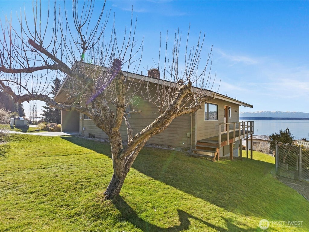 Here's an opportunity for your Whidbey vision to come true! Indulging in stunning views of the Olympics, passing ships, tranquil waters of Puget Sound and glorious colors of a sunset. Whether you seek a full-time residence, Island get away or investment opportunity, long or short-term rental, this property is for you. Home has open floor plan concept w/fireplace on both levels and expansive windows. Upper level has beautiful vaulted tongue and groove wood ceiling in living, kitchen, primary bed and laundry. Large covered main floor deck plus patio on lower for entertaining. Views are abundant throughout the home! Community amenities include boat launch, beach access and large picnic area. This is one you don't want to miss out on!!