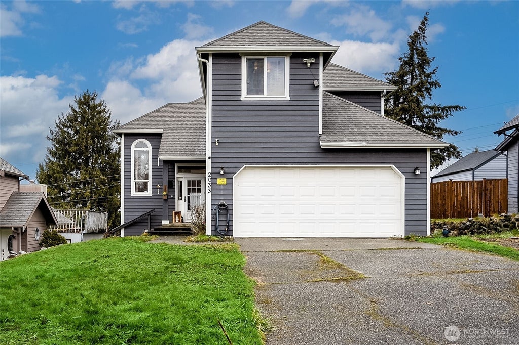 Welcome to this charming home with no HOA and partial views of downtown Tacoma! Conveniently located near the elementary school, Swan Creek, and several parks. Stay comfortable with A/C, fresh interior paint, and updated light fixtures. The spacious living room features cathedral ceilings, laminate flooring, and a cozy gas fireplace. The home also offers a dining room and a separate family room for added space. The kitchen includes an eat-in area, white cabinets, and a pantry. The primary suite boasts vaulted ceilings, a ceiling fan, a walk-in closet, and a 3/4 bath with a makeup vanity. Two guest bedrooms plus a finished room perfect as a 4th bedroom! Enjoy outdoor living with a large backyard, deck, hot tub with gazebo, and storage shed.