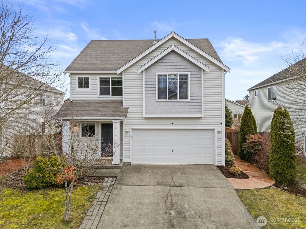 The moment you enter you know this is it! Engineered hardwoods greet you downstairs. The kitchen has quartz counters, full subway tile backsplash, stainless steel appliances, under cabinet lighting, and walk in pantry. Beautiful gas fireplace in the living room. Upstairs bedrooms all decently sized and an extra loft area for an office/bonus space. Primary bedroom is large with a 5 piece bathroom and walk in closet. Laundry room is upstairs. Backyard has a stamped concrete patio with gazebo. Garage has an electric car outlet. Great work shed with workspace for your hobbyist delight. AC ready for the summer. Playgrounds, sports court and trails throughout the neighborhood. Conveniently located just 15 minutes from JBLM.