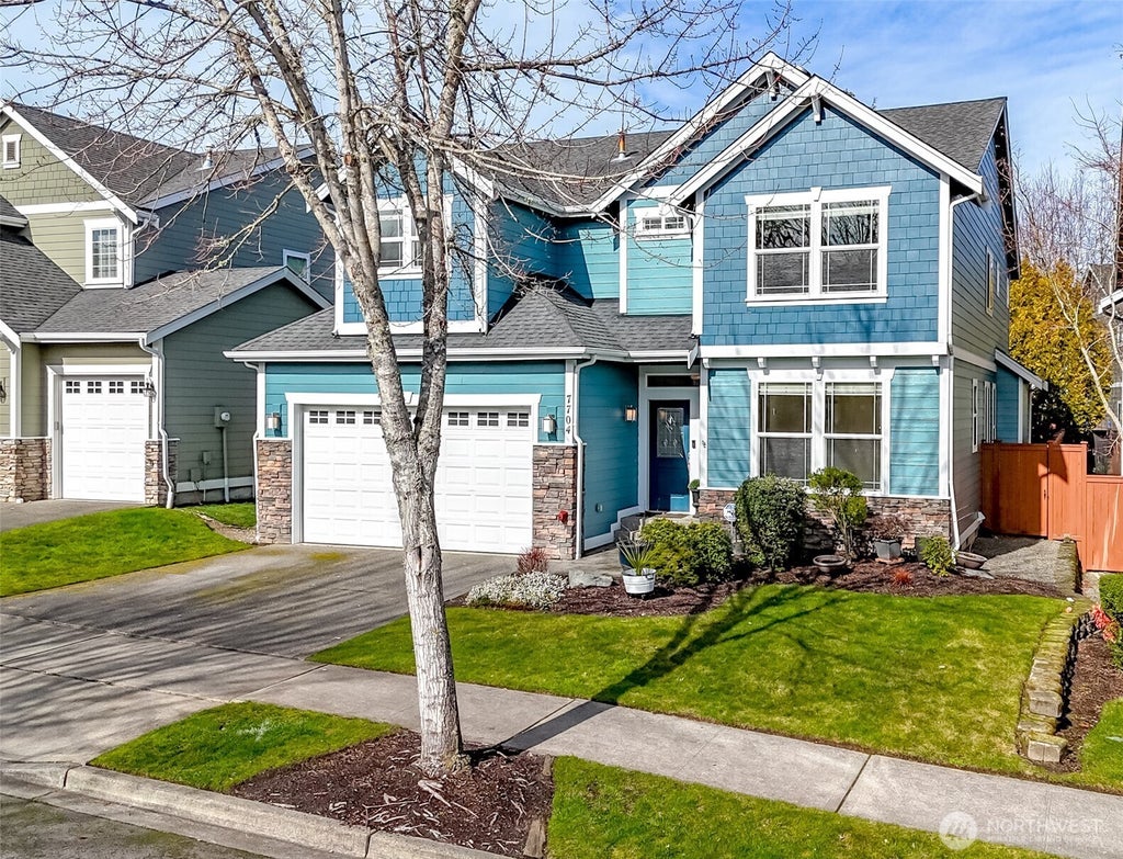 HUGE PRICE REDUCTION! VA ASSUMABLE @ 2.375%! (Must use Your Entitlement and use seller's lender). BEST FLOOR PLAN in the community! Over 3250 sf 4 bed/ 2.75 bath, 2.5 car garage! This home lends itself well to multi gen living w/a bedroom and 3/4 bath attached downstairs, 3 beds, bonus & den/office off the primary. Fireplaces in family room & primary bedroom! New in the last 2 years: gas furnace, central air conditioner (heat pump), thermostat, covered lanai, quartz kitchen countertops, new hardwoods downstairs & brand new carpeting throughout. Back yard: many refreshed landscape beds -a private oasis! Pickel-ball, soccer, basketball, ball fields, 3 parks, Community beach access just a walk down paved path. Close to JBLM & Puget Sound!
