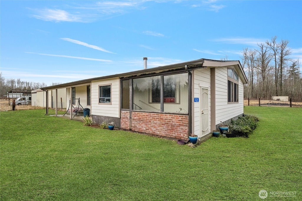 2 bedroom 2 full bath manufactured home on 1.5 acres. This property has it all, detached garage, barn/shop, fenced level lot perfect for gardening, animals and plenty of space for any hobbies that you have. Primary suite has double closets and a full bath with a soaker tub and separate shower. Den/office space could be a 3rd bedroom. Open concept living area with vaulted ceilings and lots of natural light. New Roof put on in 2022 and new siding in 2023.
