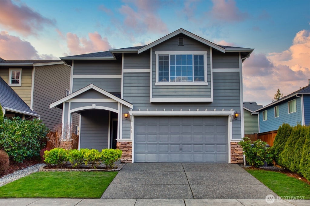 Beautifully updated home in Northshore school district prime location! Featuring vaulted 9 foot ceiling entry, hardwood floors & newer carpet! Fully updated kitchen w/ newer stainless steel appliances, gas stove, quartz counters, huge pantry & breakfast nook. Open concept layout brings together light filled living rm, dining rm & kitchen for perfect entertainment. Upstairs features spacious primary suite w/ 5 piece bath & large walk in closet + 3 additional rooms. Low maintenance hardscaping in backyard, newer exterior paint, cat-5 wiring thru-out, EV charger, in-wall surround sound, whole home water softener, newer water tank & AC! In coveted Northshore SD, along new N.Creek trail & Pre-inspected!