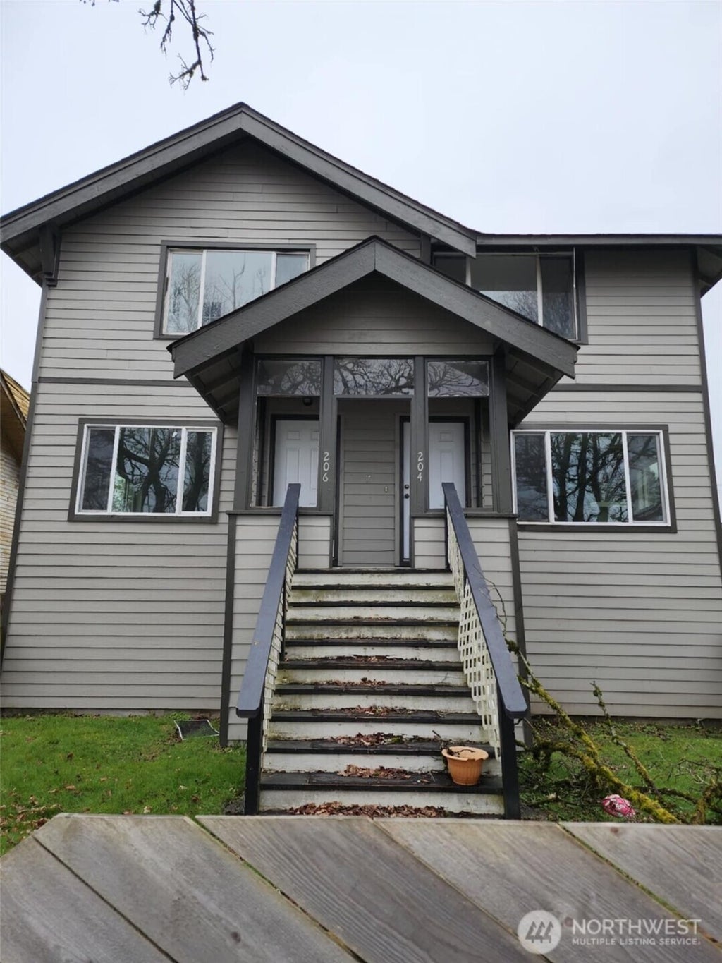 Remodeled duplex close to downtown area. Upgrades include windows, sheetrock, painting, flooring, roof, electrical, kitchen, baths, mini-splits, deck and foundation. Really all the hard work has been done. Each unit has 4 bedrooms plus 1 and 1/4 baths. The bedrooms facing the street have enclosed sun porch. Both covered front and back porches. Shared deck in back. This duplex has a townhouse feel. Off street parking in back. Laundry in the basement in unit 206 and in the kitchen in unit 204. Unit 204 has a larger area in the basement. The duplex has been used by a non profit and expenses are estimated. No rents were collected.