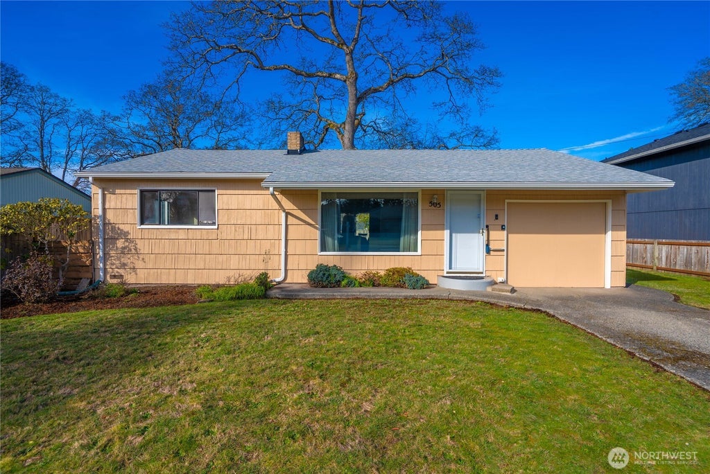 Cozy rambler in Parkland near PLU! First time on the market in over 70 years!!!! Beloved family home for decades, well loved and well traveled, now it's time for the next generation. Solid little starter or investment property. We pulled away the shag, to reveal timeless original oak hardwood floors throughout. Surprisingly spacious living room with classic brick fireplace and large picture window. Compact kitchen with eating nook and a slider door out to the backyard. 2 nice sized bedrooms and a full bathroom. Newer comp roof and a dry level lot with a fully fenced backyard and patio. Attached garage, forced air heat, and all the appliances are included. Great bones, just needs a little sprucing up to make it shine again!