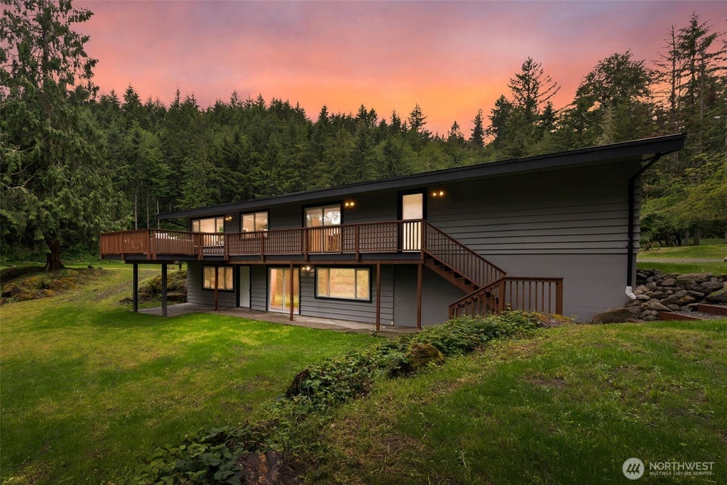 Once-in-a-lifetime opportunity to own a riverfront property with 20 acres of total privacy & seclusion! Drive down your private driveway, w/ views of the river & terrain frequented by elk & abundant wildlife. Completely remodeled home w/ 3 Beds, 3 Baths, an additional bonus rm or 4th bedroom. 2 separate living spaces w/ 2 kitchens, 3 baths, a new roof & all new fixtures. Enjoy river views from the living areas, complemented by a wood stove set against a river rock hearth. Explore the path leading to the upper forested area w/ valuable timber. Enjoy the solitude of the river w/ salmon, trout, & bald eagles—a truly magical experience. Welcome to your slice of paradise!