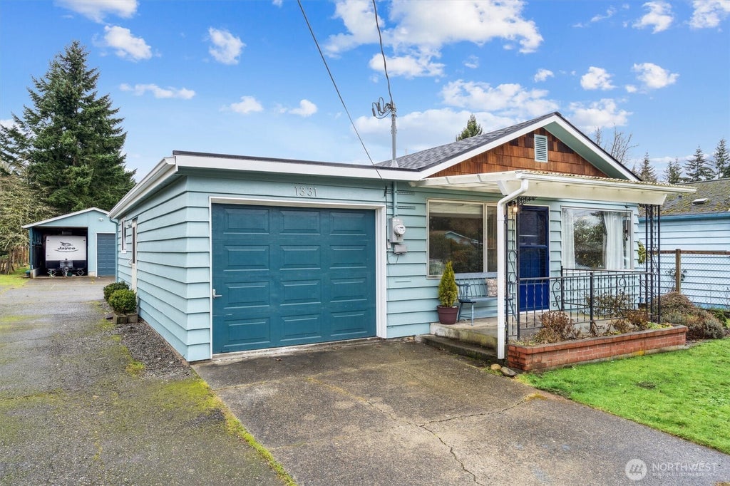 Home, garage, shop, and nearly 1/2 an acre in the heart of East Bremerton! This renovated mid-century rambler features an updated kitchen, a cozy living room, 2 beds, 1 bath, and a bonus room. Fully remodeled in 2017, including new electrical, plus a brand-new roof (Dec. 2024) & updated windows! Move-in ready! Enjoy three garages (2-car w/ shop, double RV garage, 1-car garage) and ample parking. The spacious, fully fenced backyard includes fruit trees, a garden shed, and garden space. Conveniently located near shopping & schools. Welcome home!