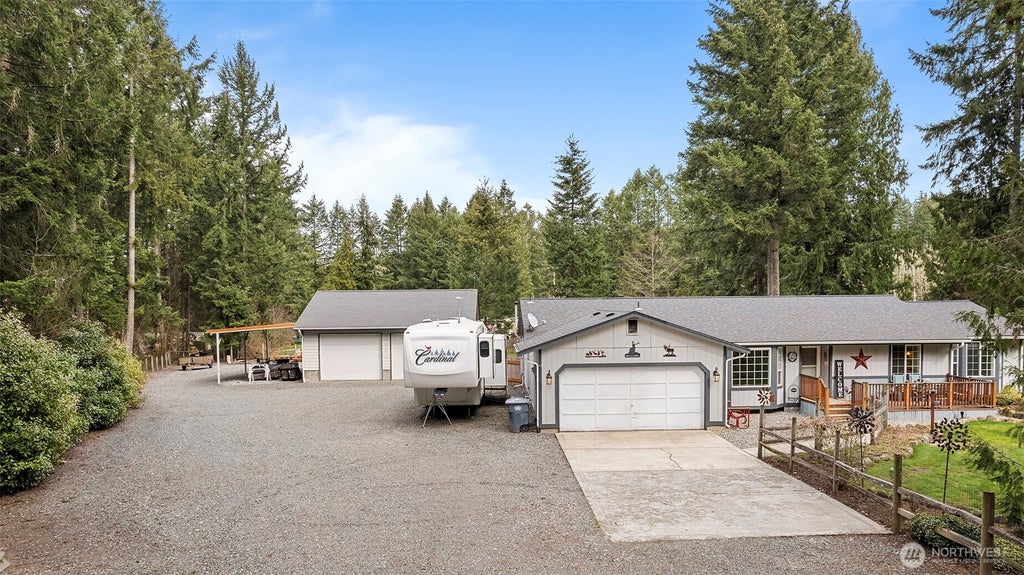 Meticulously Maintained Rambler on 1.19 Park-Like Acres! This beautifully cared for original owner 3-bedroom, 2.5-bath rambler offers 1,776 sq ft of comfortable, single-level living. Nestled on a stunning fully fenced lot, this property is a dream for those who value space, privacy, and functionality. Enjoy the large attached 2-car garage plus a massive fully finished and heated 32x30 shop. An RV carport, additional lawn tool shed, and ample parking for all your toys. Cozy up to the efficient pellet stove all winter long, sprinkler system keeping the grounds lush and green. Located in a peaceful area, this is the ideal blend of rural charm and convenience. Don’t miss the chance to make this exceptional property your forever home!