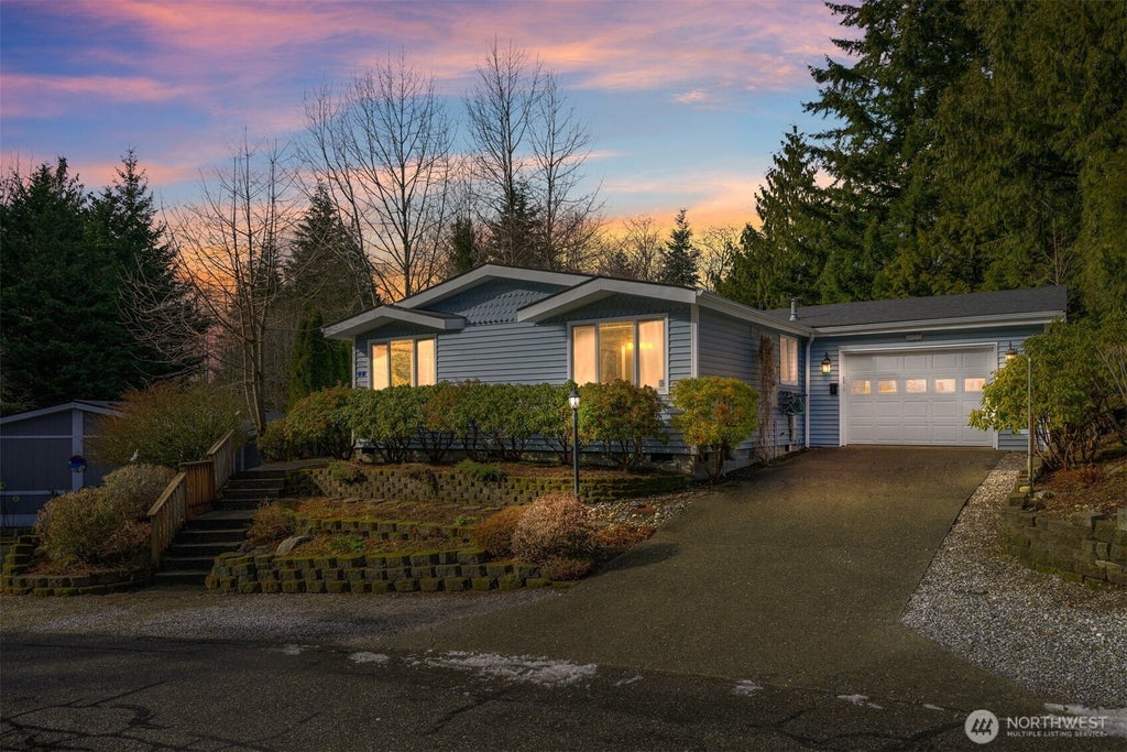 Beautifully updated 3-bedroom, 2-bath home in Lake Padden Estates, a sought-after 55+ community where you OWN your own land! Step into the radiant, open-concept living & dining area, where soaring vaulted ceilings & grand windows fill the space with natural light. Large kitchen opens to 2nd living room + laundry room. Primary suite offers spa-like retreat w/soaking tub, shower, double vanity, generous walk-in closet + hot tub on deck. Seller spent $45k on updates incl. new LVP flooring & carpet, fresh interior paint, new roof & crawlspace renovation for a move-in-ready feel. Enjoy a stunning backyard with a sprawling deck & lush, park-like private lawn. Trail next to clubhouse leads to over 100 Galbraith Mtn biking trails & Lake Padden.