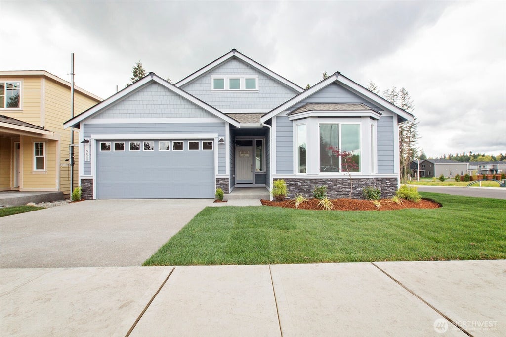 Under construction, this popular Rob Rice Homes Pine plan offers 4 bedrooms & 3 baths including primary suite w/5 piece bath on main floor+ 2nd floor w/bedroom, full bath & bonus room. Details throughout include a soaring entry w/open rail on 2nd floor, great room w/cozy gas fireplace, dining nook, & spacious kitchen w/oversize island offering an abundance of storage. Interior features also include striking graphite-stained Shaker style maple cabinetry & crisp quartz counters & engineered hardwood flooring. Energy efficient including electric heat pump, solar panels and electric hybrid water heater. Fully landscaped & fenced w/covered patio. Est. completion-3/7/25. Photos from similar plan on different lot, features may vary