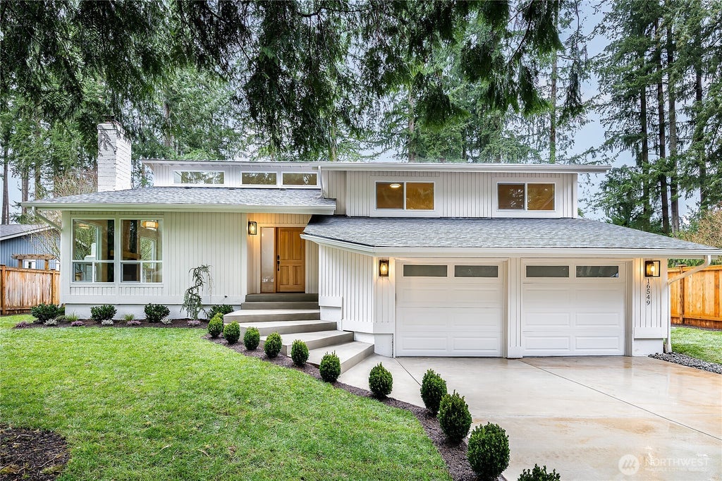 Stunning modern home nestled on an expansive serene lot in the coveted Cottage Park Estates community. Completely refreshed inside and out! Designer kitchen featuring a waterfall island with built-ins, quartz counters, and opens to main living room with vaulted ceilings and large picture windows. Incredible primary bed boasting a 5-piece bath and walk-in closet. Engineered hardwoods and tile throughout. Sprawling deck overlooks large backyard. Plenty of parking in long driveway and attached 2-car garage. Top rated Northshore School District. Nearby library, shopping, dining, parks, and wineries! New roof and gutters, windows, furnace, heat pump, AC, appliances, landscaping, fencing, and all high-end interior materials.