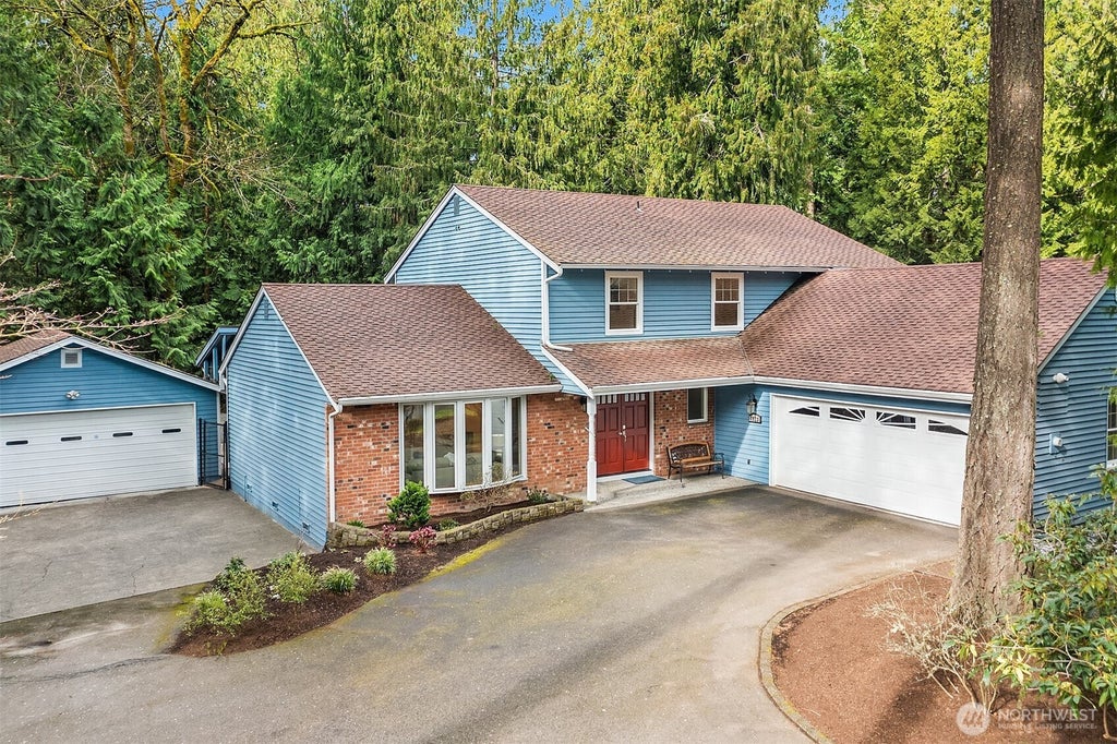Nestled in quiet cul-de-sac of Kelsey Estates ($0 HOA) on 1.03 acres is a 4 bedroom 2.5 bath home w/dedicated office, living, family & dining rms. Attached 2 car garage plus detached 24x32 heated finished shop w/110+220 power, compressed-air lines, built-in storage, lg garage door. Large fenced backyard, circular floor plan and 10x54 covered patio w/2 extra-wide sliding doors make this home perfect for entertaining. 2021 updates include all new fireplace, stone tile surround, anchored wood mantle, most windows and sliders, guest bathroom. New H2O heater 2025. Upstairs features primary suite + three bedrooms & guest bathroom. Easy walking distance to Emily Dickinson Elementary & Evergreen Middle School, and only 8 mins to downtown Redmond!.
