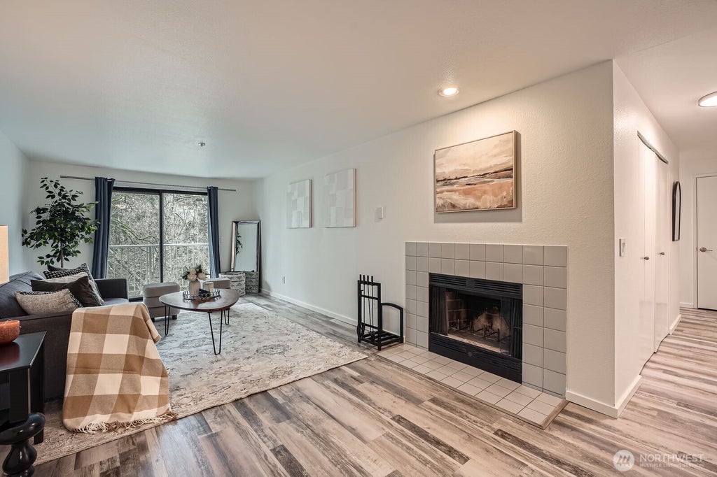Sound Vista welcomes you to this spacious 2bed, 2 bath condo surrounded by nature, yet so close to amenities. Fresh paint, new flooring, wood burning fireplace, 2 dedicated parking spaces, walk-in closet, in-unit laundry with washer/dryer, and storage. Step out on the deck to a view overlooking the green belt. Sound Vista backs up to Seahurst Park, with access to greenbelt trails, wildlife, and a public beach. Minutes to coffee shops, eateries, library, South Center mall, airport, DT Seattle. No rental cap. Clubhouse w/a pool, hot tub, sauna, game room. HOA covers W/S/G garbage.